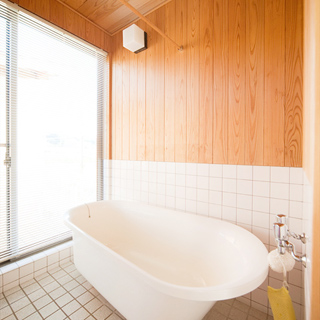 杉の赤身はカビや水気に強いので、お風呂でもご使用いただけます。天井、壁に張るだけで杉の香りいっぱいのお風呂場になります。
